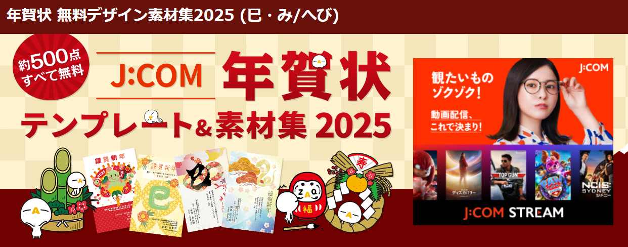 主に年賀状への無料素材として提供しているのは「J:COM」です。