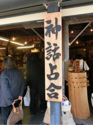 1本の棒を引き、その先端に書かれた文字をお店に持っていくと、あなたが今、必要な力をもたらしてくれる神様について伝授されるはずです。