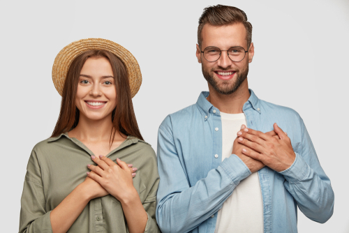 印を書いた親指を中に入れるようにしてグーを作り、自分の心臓にゆっくり当てます。