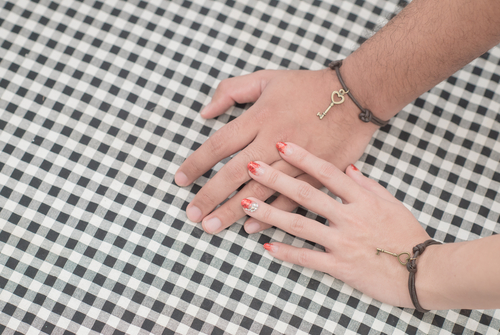 彼が左手でスマートフォンや財布、鍵を持っている時にあなたが左手で触れていき、既婚男性と自分の薬指を触れさせます。