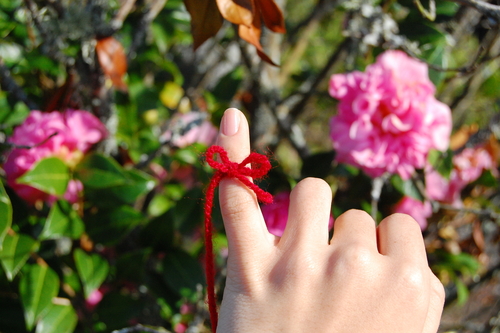 糸を小指から解く際に、赤い糸を切ったりしなくても良いように蝶々結びなどでスムーズに解けるようにしてください。