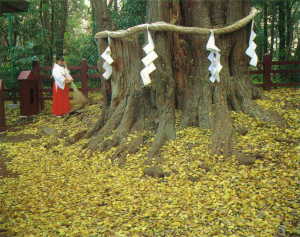大國魂神社の本殿裏には、樹齢1000年を超える大きなイチョウの木があります。