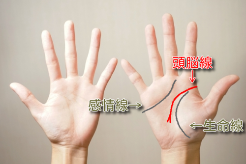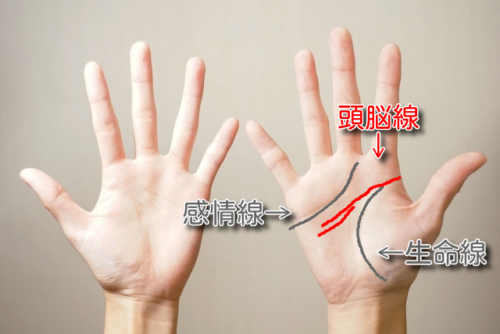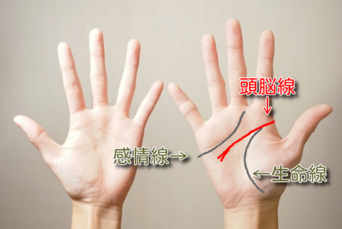 親指と人差し指の間から手の平の中心にかけて伸びる相を頭脳線。