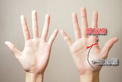基本的な頭脳線(知能線)の手相が短い相は、その場のノリを重要視するという意味があります。