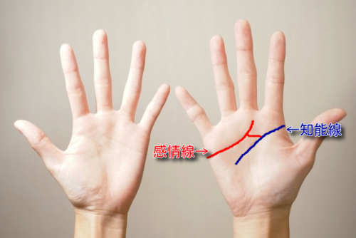このハートラインである感情線の先端が、二つに枝分かれしている方向で意味が変わってくるのです。