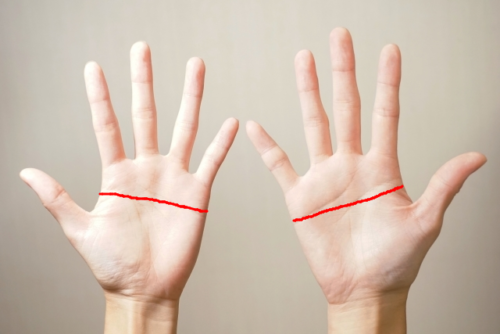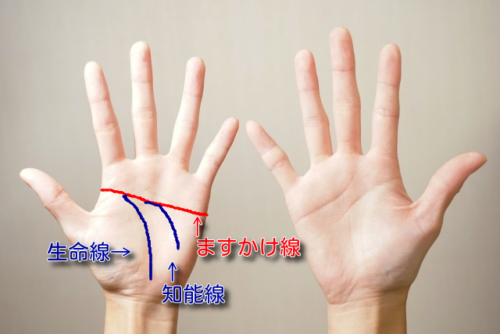 しかし、その大きな二つの線が1本となり、手の平の端から端まで伸びているものをますかけ線と言います。