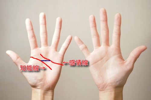感情線と知能線が分かれて相に表れているのが多くの人が手相に持つものです。