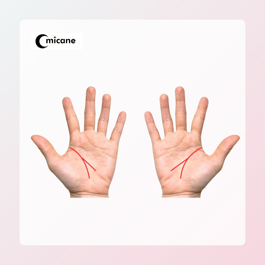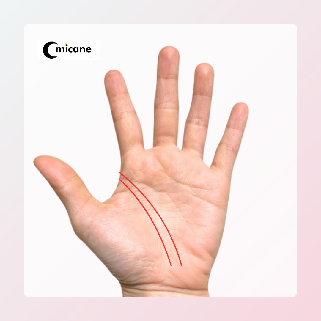 生命線の半分よりも下の位置から親指側に向かって伸び、最終的に親指側の丘のようになっている部分(月丘)に到達している線がこれに当てはまります。