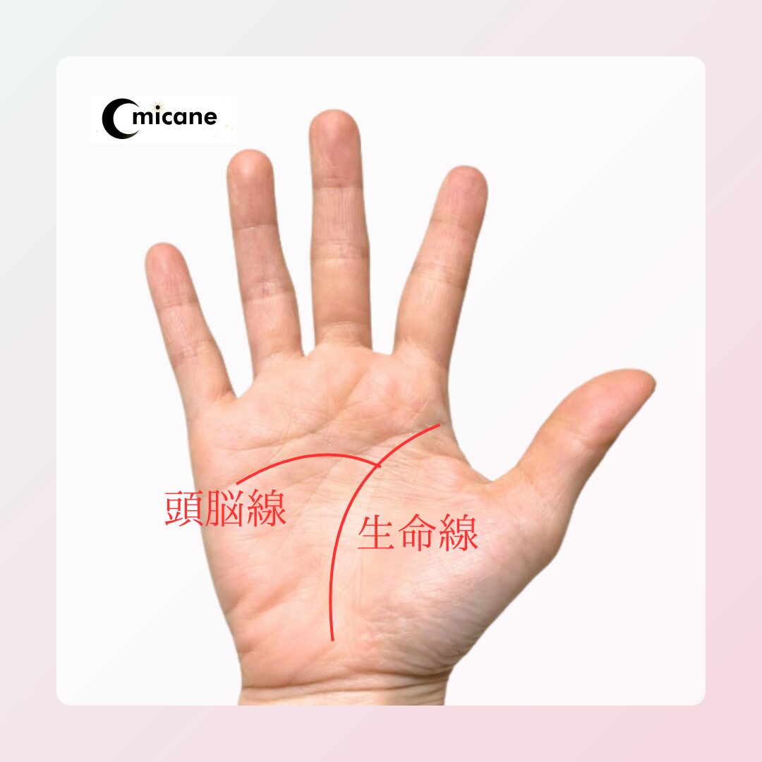 生命線から頭脳線が枝分かれするように伸びている手相は、考えすぎて、慎重になりすぎて、チャンスを逃してしまうというその人の傾向を表しています。