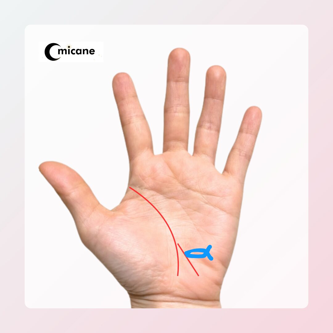 生命線が分かれているところに“フィッシュ”と呼ばれる二本の線が交わって魚の形のように見える部分があった場合には、その位置に当てはまる年齢の頃に思いがけない幸運に恵まれることを表しているといわれています。