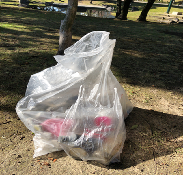 いつもは公園全体を歩くことはあまりないのですが、今回の活動を通して普段目につかない場所にもたくさんのゴミが落ちているのだな、と感じました。