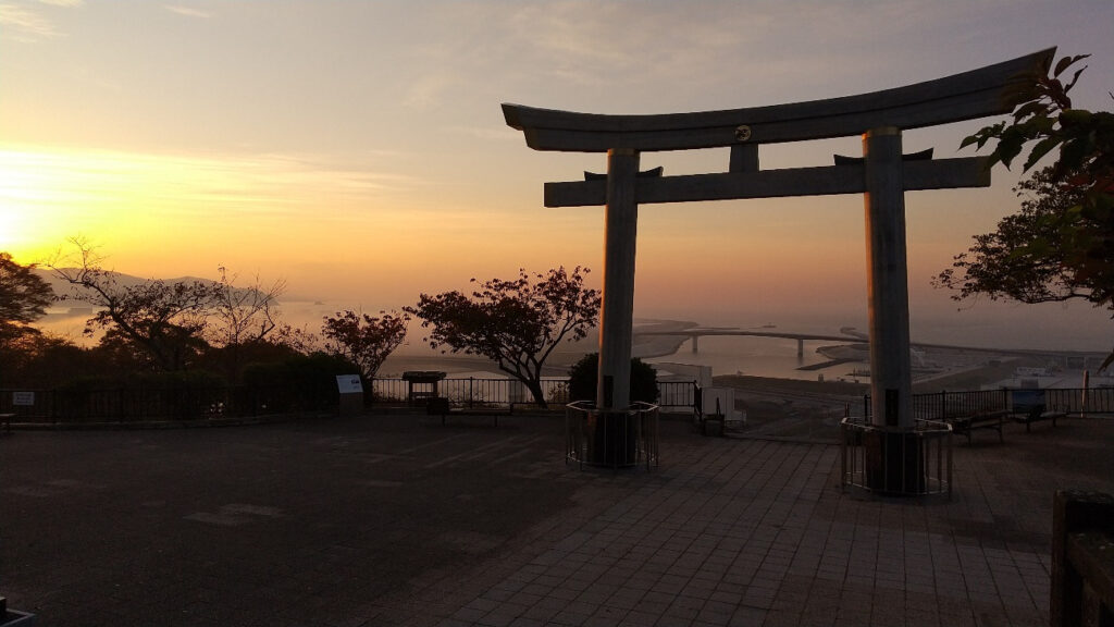 そのまま日和山の上にある鹿嶋御子神社に行って参拝を済ませると、ちょうど鳥居の向こうから朝日が昇るところでした。早速公園内を見回りましたが、最初のうちは何も見つからない時間が続きました。公園から出て駐車場の方に向かうと、草の間からプラスチック製のごみや空のペットボトル等が少しずつ見つかりはじめました。