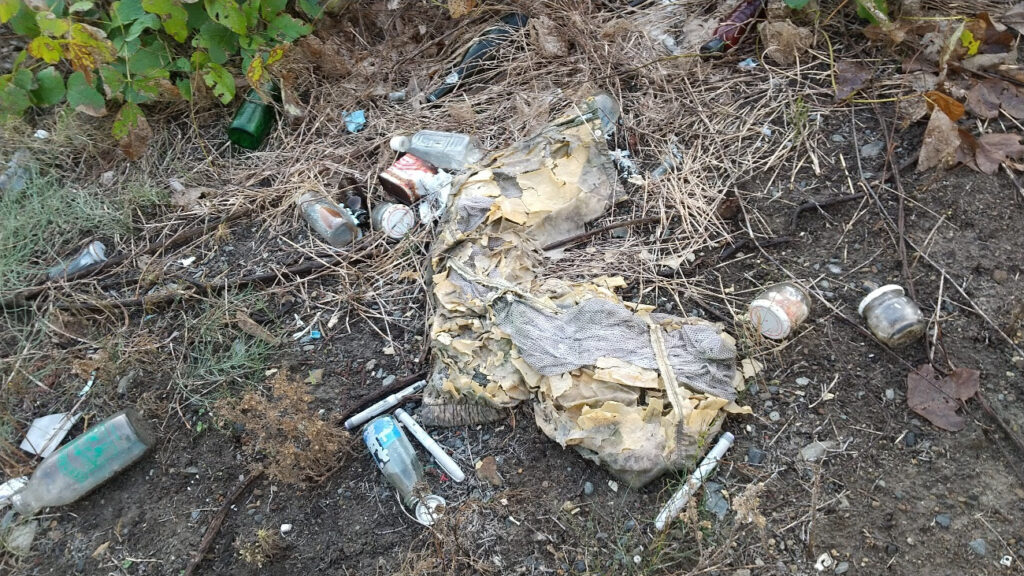 すでに手に持っているごみ袋はかなりの重さになっていました。さすがに一人で一度にこの場所全部を片づけるには体力的に無理だったので、ある程度まとめておいて、残りは明日やることに。