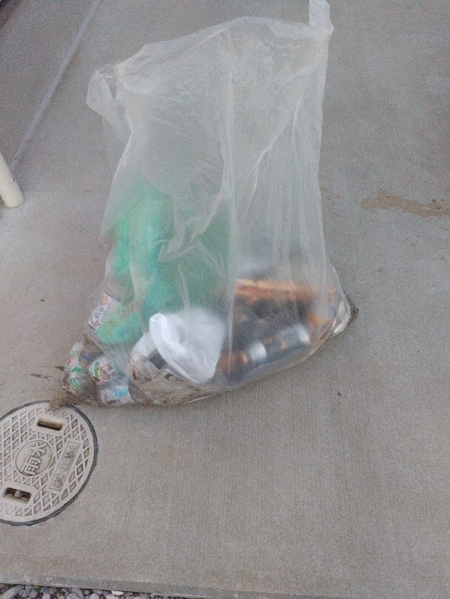 ここで拾ったゴミは、空き缶一つ、発泡スチロールのゴミ、マスク、お菓子の包装ゴミ、ストロー1本でした。