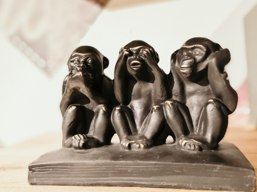 「くくり猿」見ざる、言わざる、聞かざるの三体の猿が境内に置かれているのです。