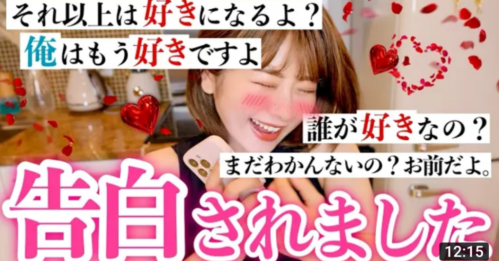 | youtubeのテーマ | 個人相談は行っていない。ライフスタイルや恋愛テクの動画投稿 | ||