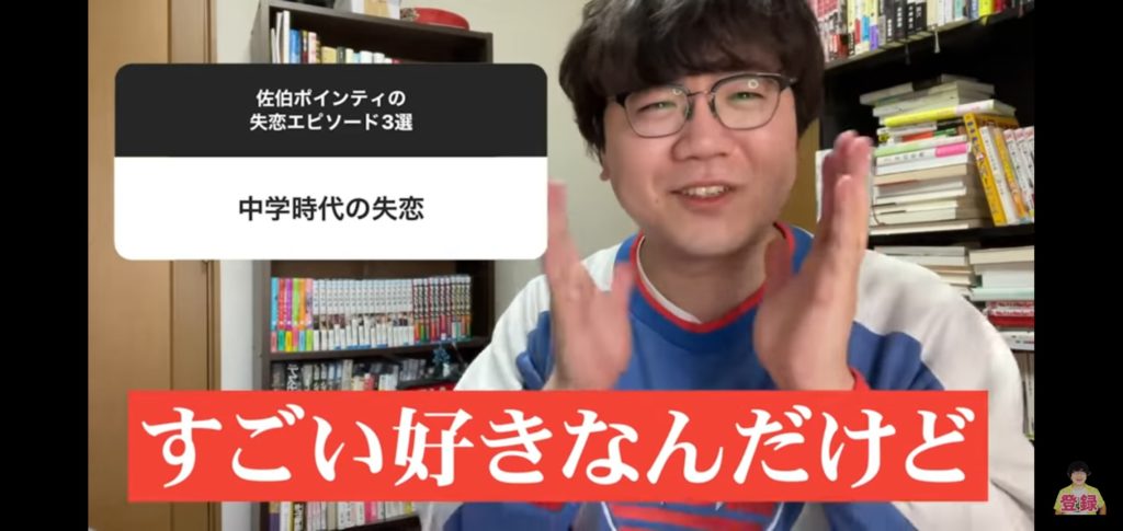 こちらの動画は、恋愛指南などではなく単純に佐伯ポインティさんの過去の話です。失恋の話と言えば暗い雰囲気や悲しい雰囲気になりがちですが佐伯ポインティさんの失恋話です。