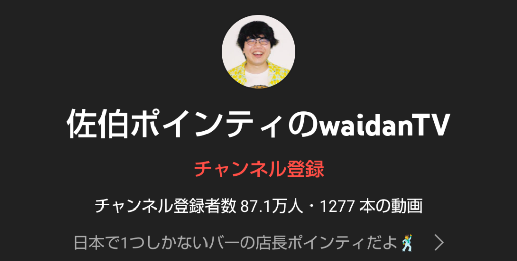 佐伯ポインティのwaidanTVのサブチャンネルは?
