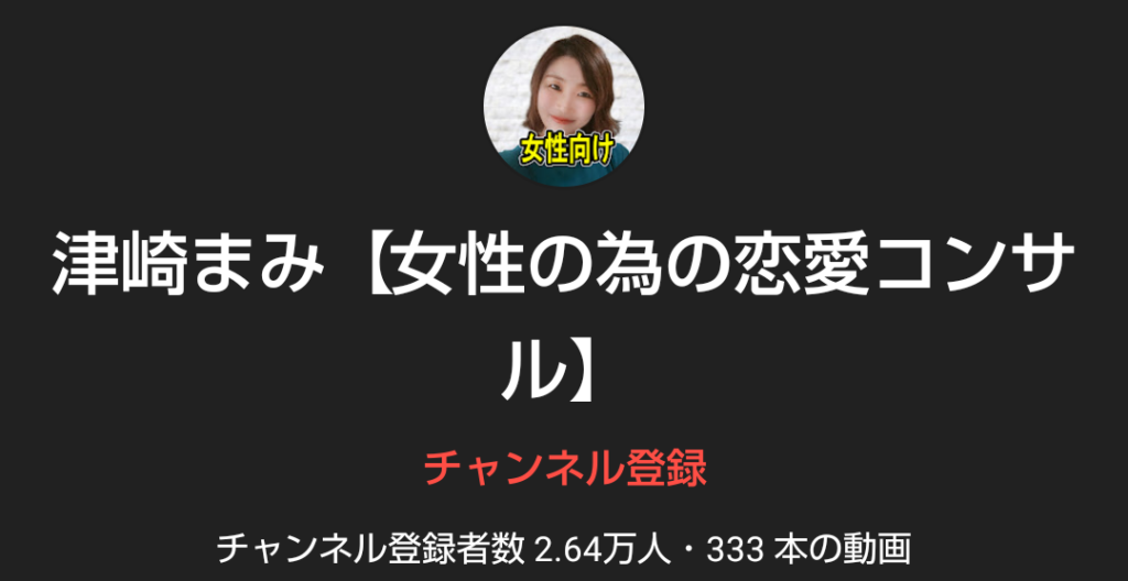 女性向けチャンネルのタイトルは、「津崎まみ【女性の為の恋愛コンサル】」です。なので、女性向けというのがすぐにわかります。
