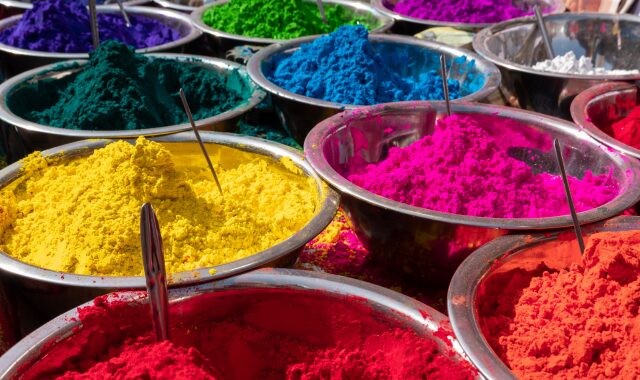 クムクム(赤い粉)は繁栄や祝福を願う印として、特に祭礼や結婚式で使用されます。