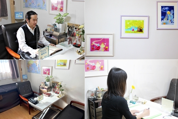 館を夫婦で経営し、占い師の先生とイラスト製作を行う奥さんとで相談者を前向きな気持ちへと促す場所です。