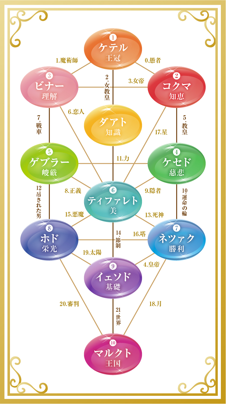ひとつひとつのセフィラは22本のパスで繋がれており、順番に読み解くことで理解を深めていくことができます。