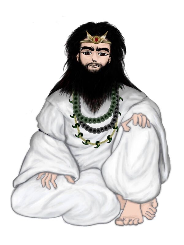 天照大御神の八尺の勾玉を譲り受けて、噛んで吹き捨てた気吹きの霧から五男柱が生まれました。